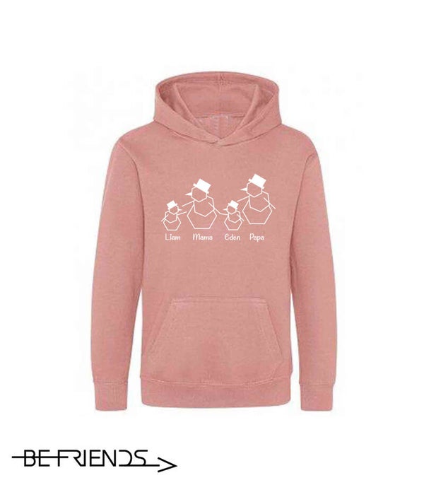 Hoodie Christmas Family 2 children / 2 snowmen & name